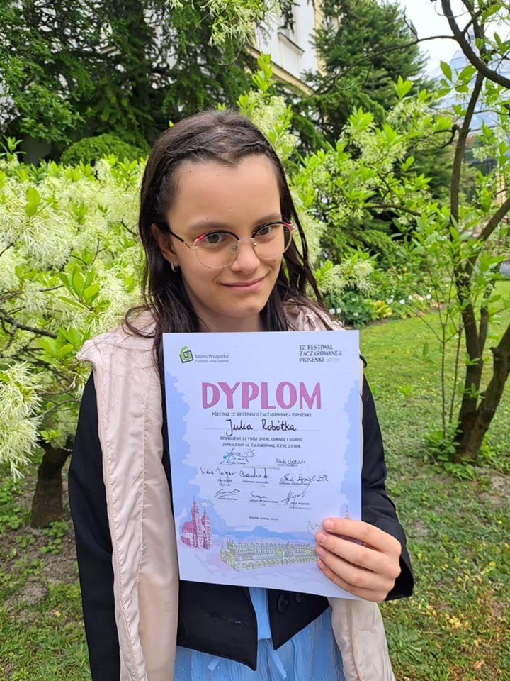 ➡10 maja 2025 roku Julia Robótka wzięła udział w półfinale prestiżowego Festiwalu Zaczarowanej Piosenki, organizowanego przez Fundację Anny Dymnej „Mimo Wszystko”. Wydarzenie odbyło się w wyjątkowej scenerii – w Ogrodzie Botanicznym Uniwersytetu Jagiellońskiego w Krakowie, który tego dnia tętnił muzyką, emocjami i niesamowitą atmosferą.