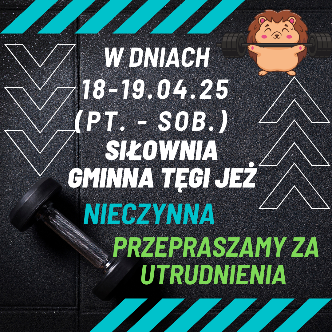 W dniu 3.06.2025 (wtorek) Siłownia Gminna Tęgi Jeż nieczynna.