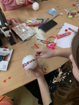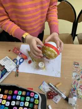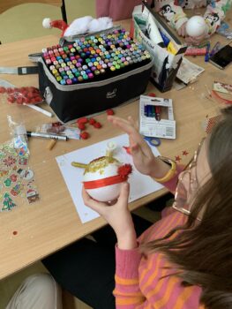 Ale największą frajdę sprawiło nam własnoręczne tworzenie bombek! Farby, brokat, wstążki – kreatywność dzieciaków nie miała granic. Efekty? Niezapomniane ozdoby, które teraz zdobią naszą świetlicę i wypełniają ją świątecznym klimatem.