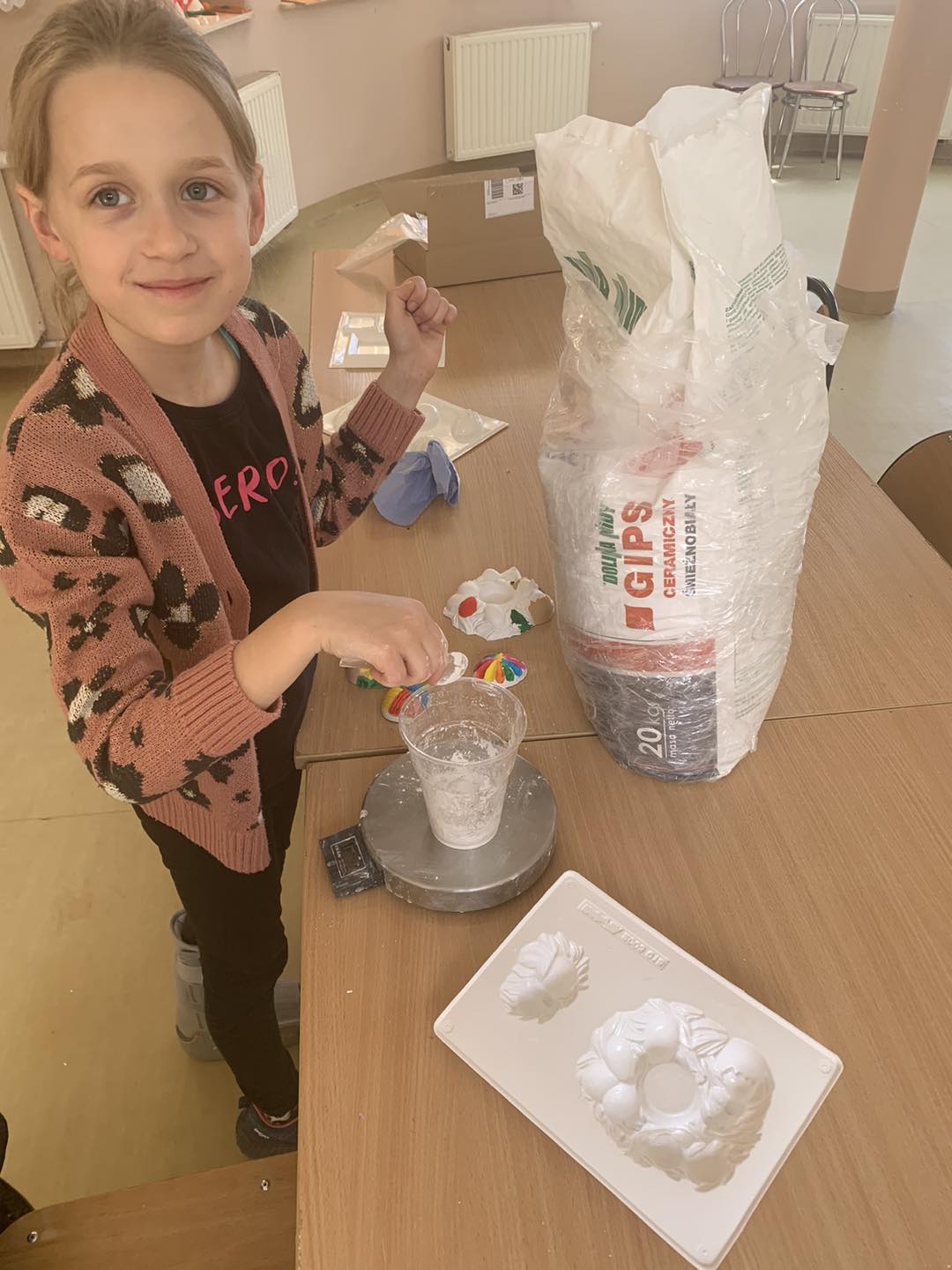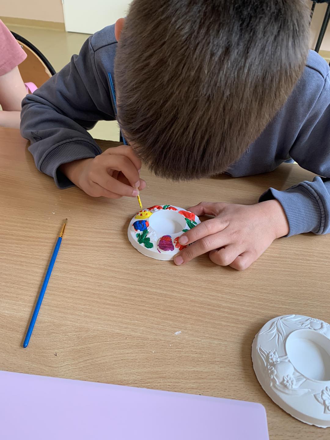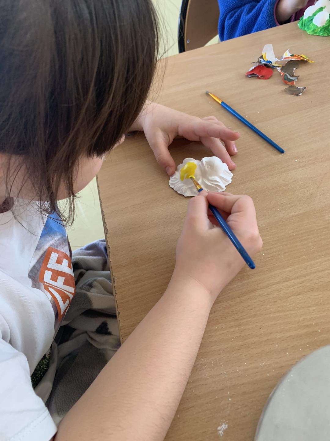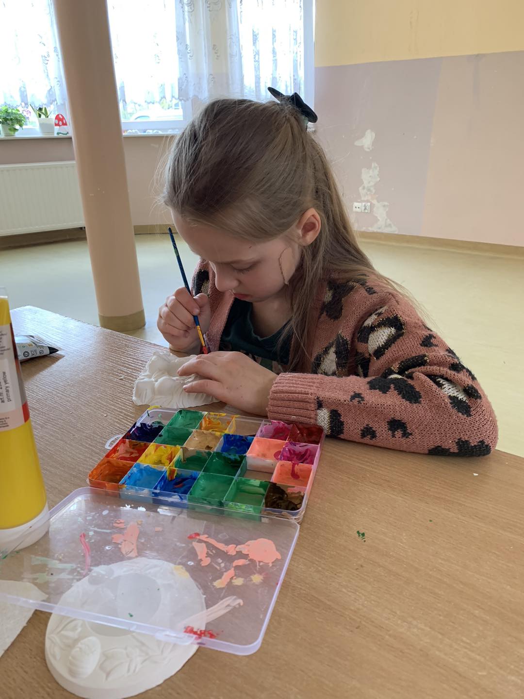 Przed świętami wspólnie z dziećmi tworzyliśmy wielkanocne ozdoby z gipsu – pisanki, króliczki i kurczaczki. Każde dziecko mogło dać upust swojej wyobraźni, malując i dekorując gipsowe figurki według własnego pomysłu.