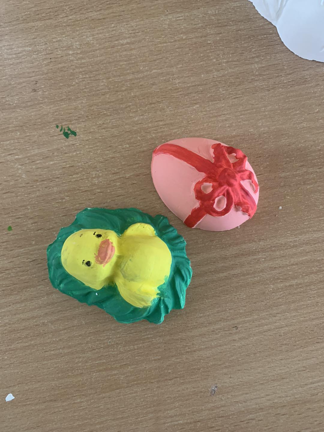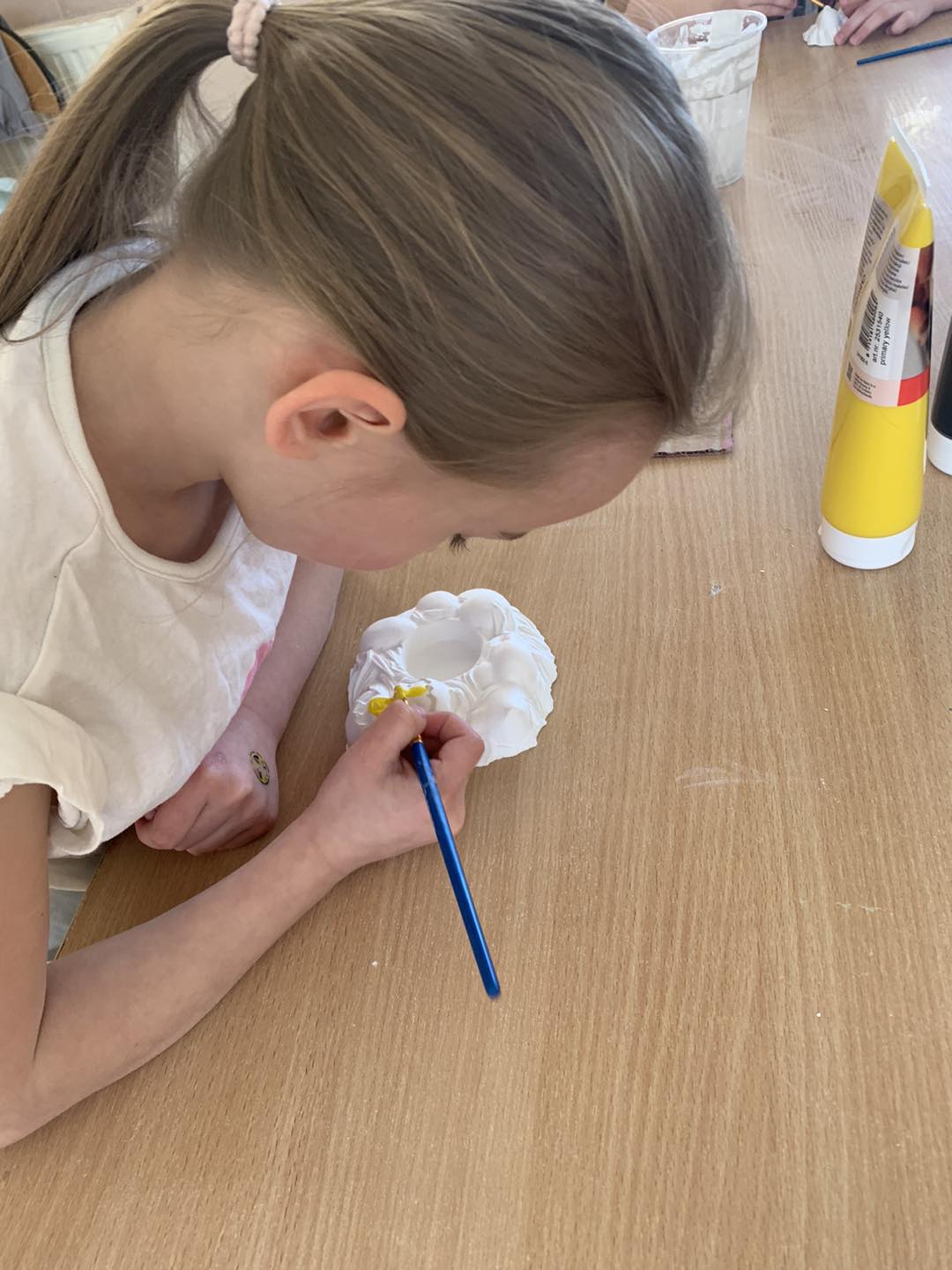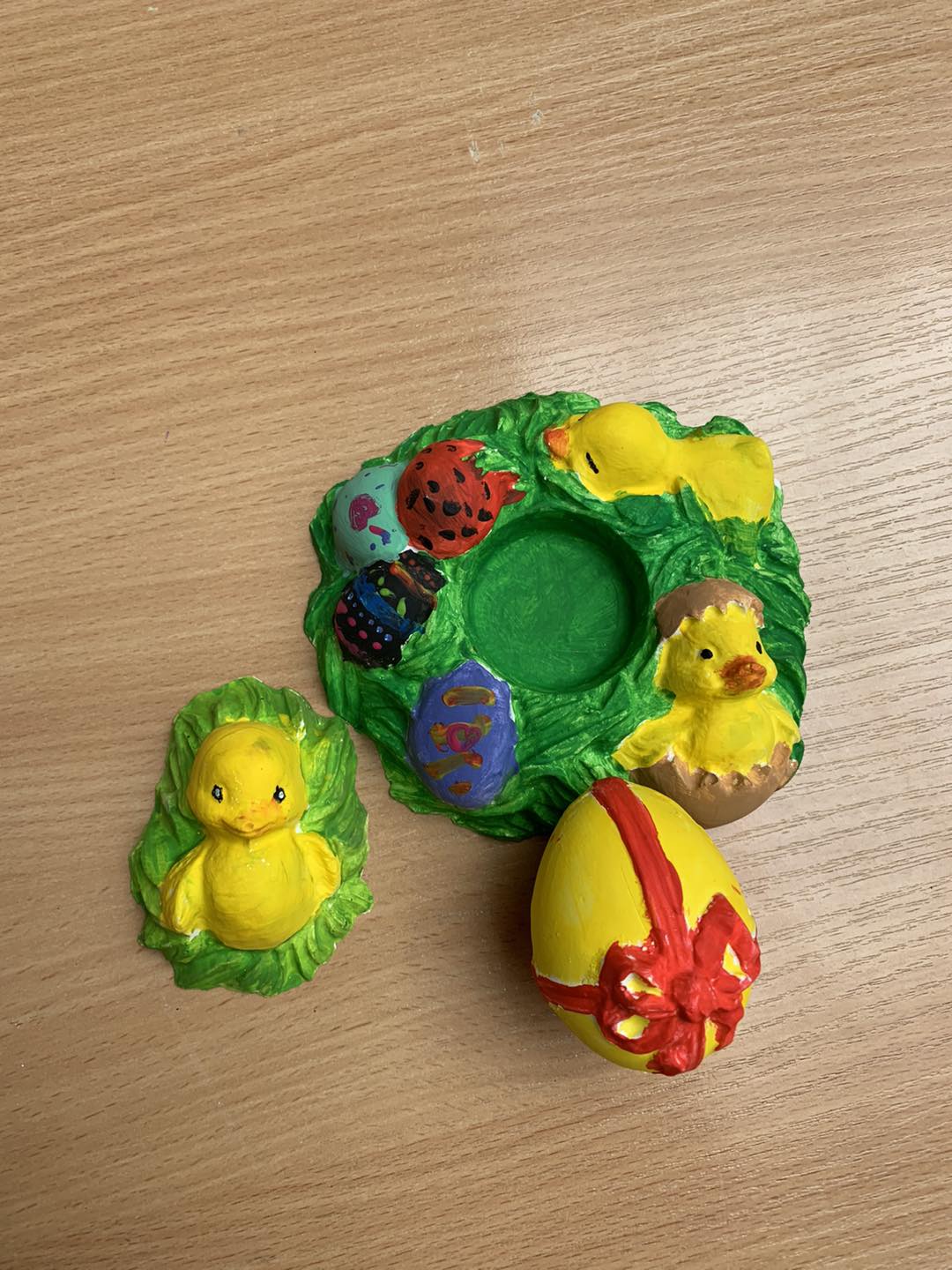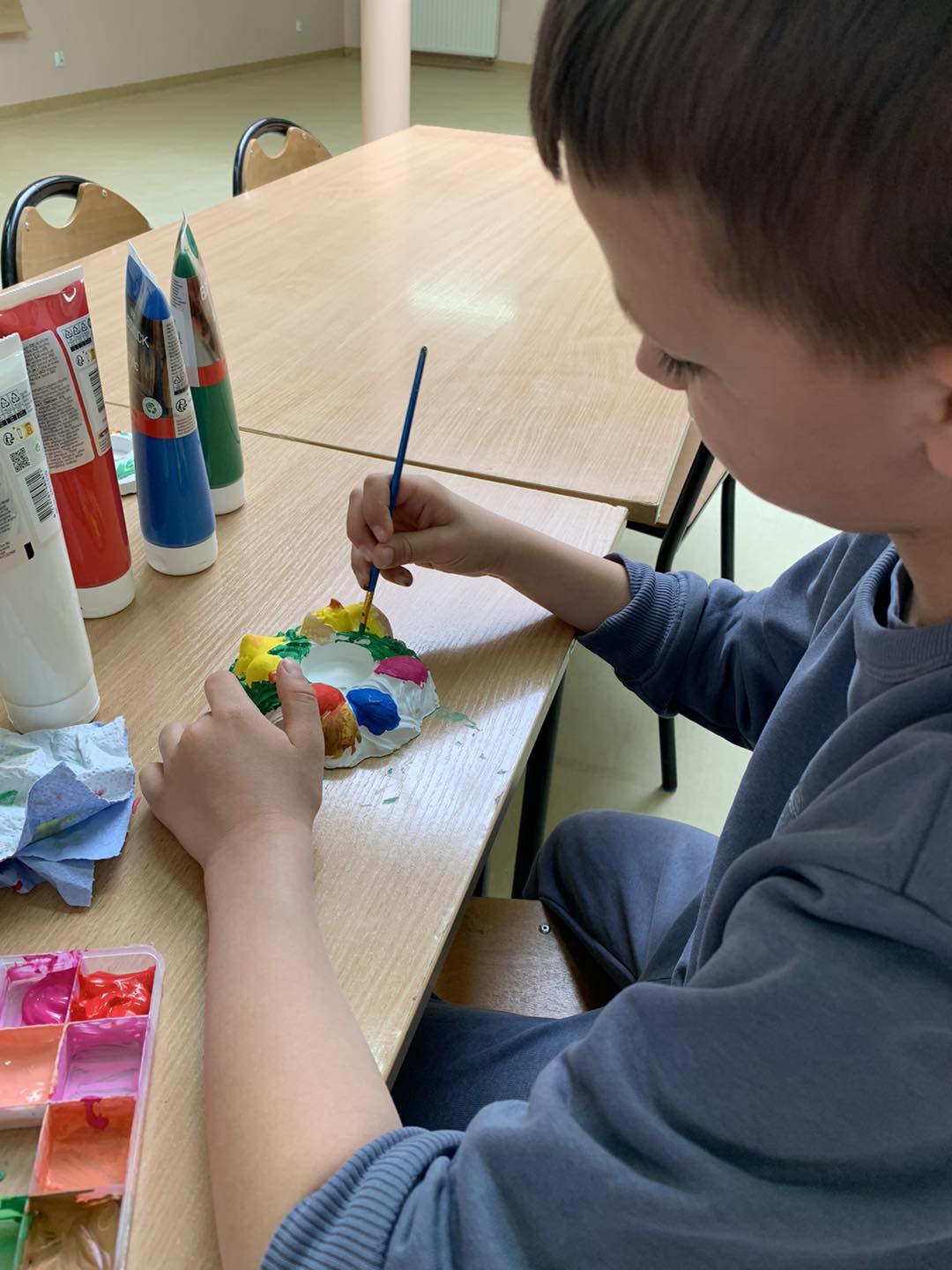 Przed świętami wspólnie z dziećmi tworzyliśmy wielkanocne ozdoby z gipsu – pisanki, króliczki i kurczaczki. Każde dziecko mogło dać upust swojej wyobraźni, malując i dekorując gipsowe figurki według własnego pomysłu.