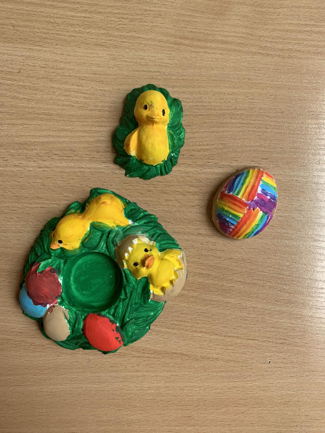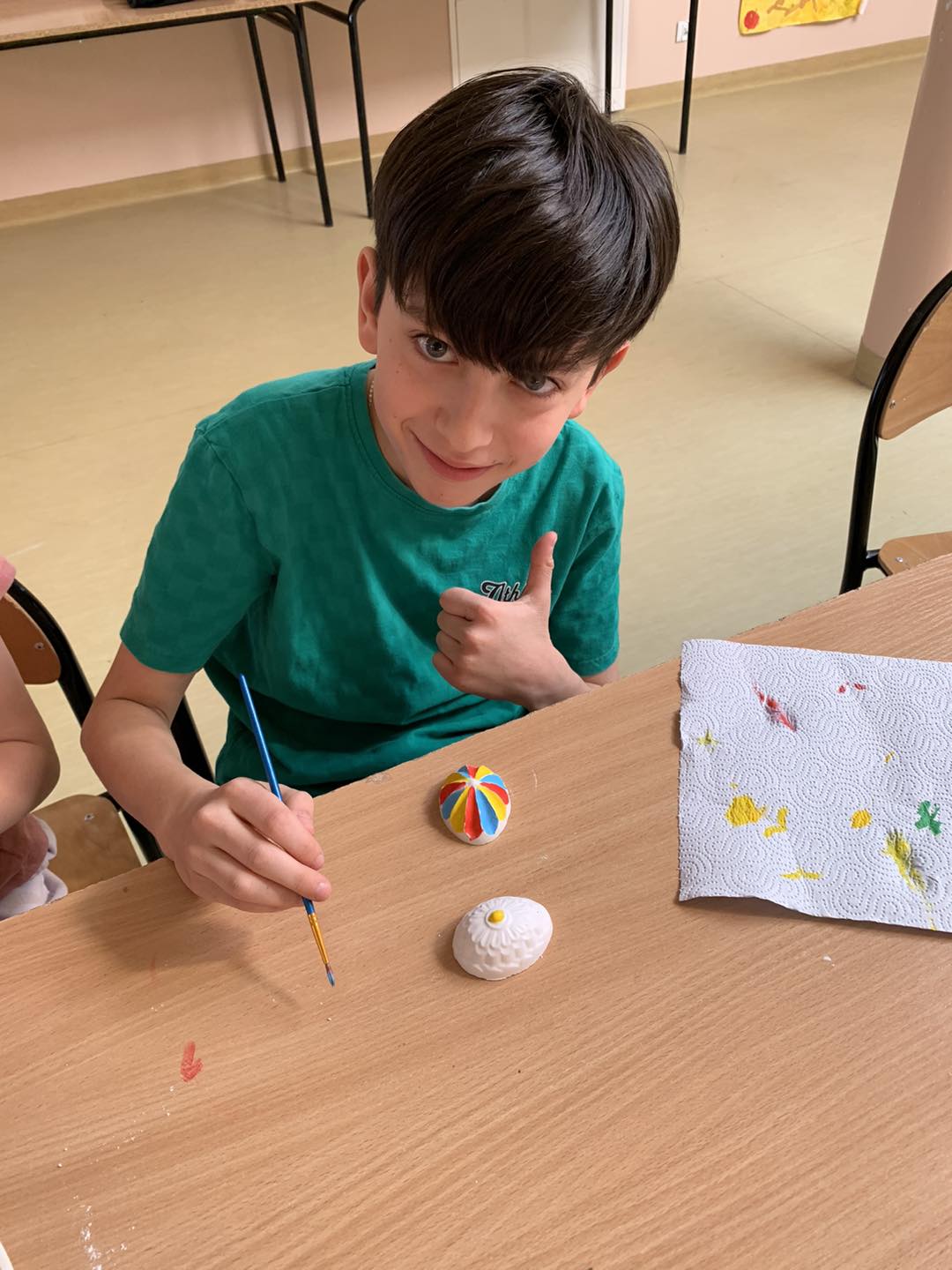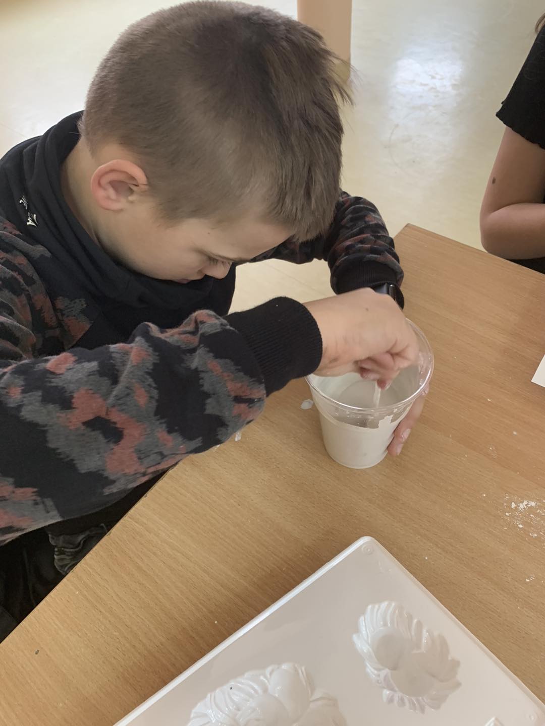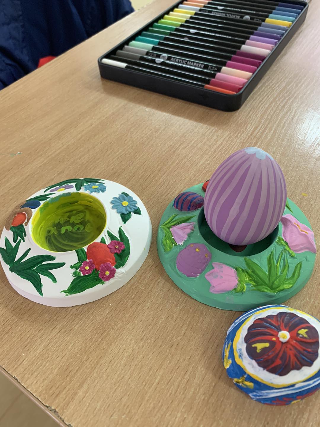 Przed świętami wspólnie z dziećmi tworzyliśmy wielkanocne ozdoby z gipsu – pisanki, króliczki i kurczaczki. Każde dziecko mogło dać upust swojej wyobraźni, malując i dekorując gipsowe figurki według własnego pomysłu.