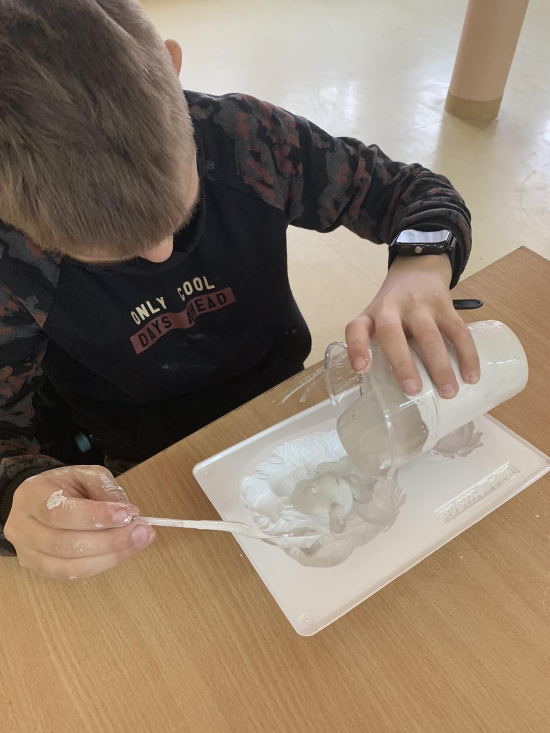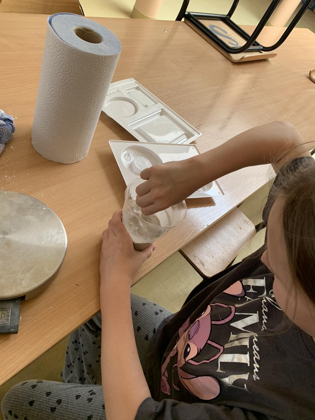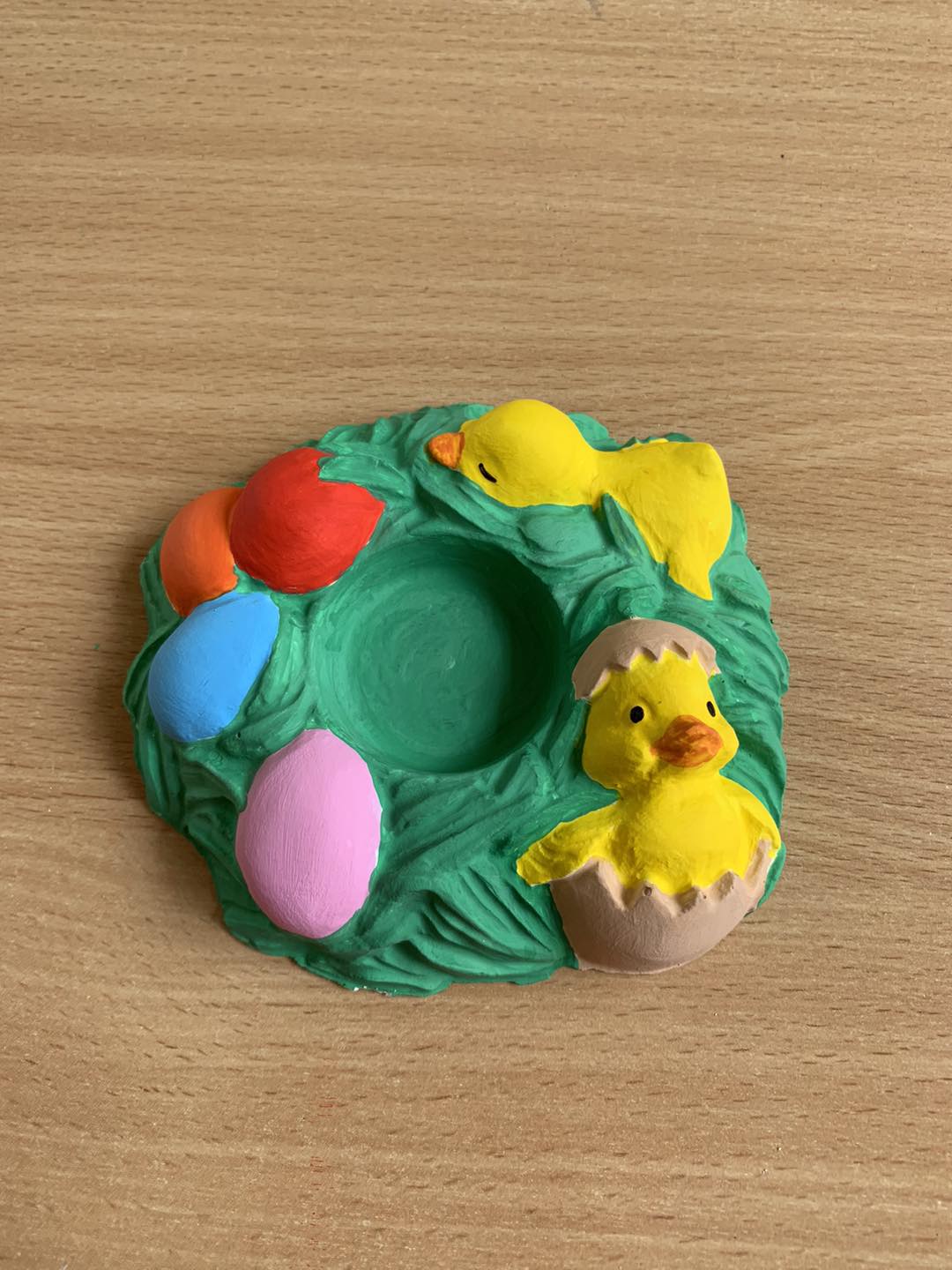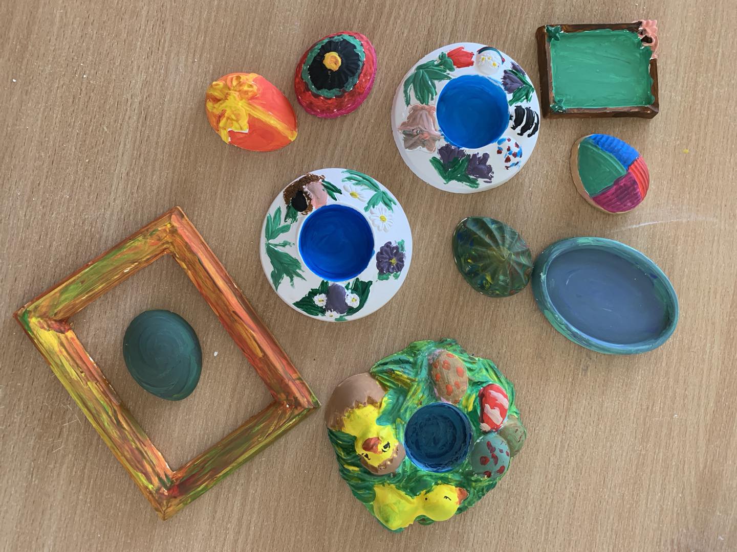 Przed świętami wspólnie z dziećmi tworzyliśmy wielkanocne ozdoby z gipsu – pisanki, króliczki i kurczaczki. Każde dziecko mogło dać upust swojej wyobraźni, malując i dekorując gipsowe figurki według własnego pomysłu.