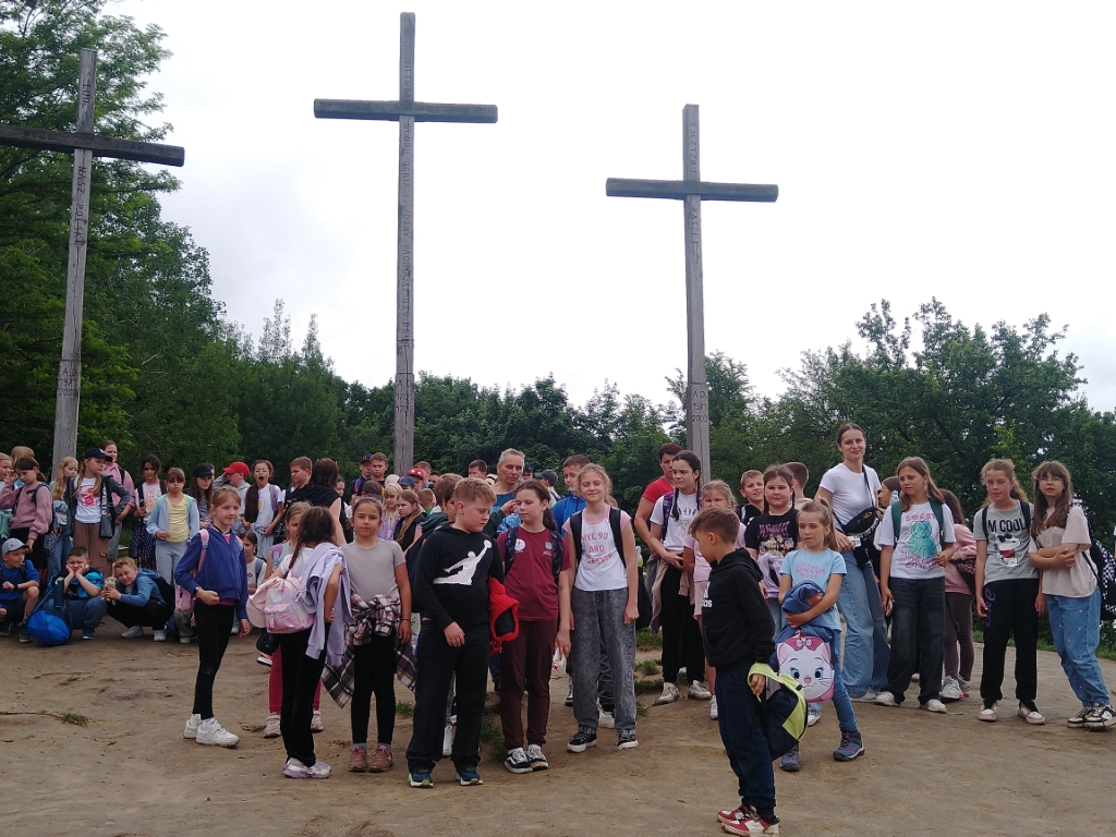 Kolejnym punktem programu była wizyta na Górze Trzech Krzyży, skąd roztaczał się zapierający dech w piersiach widok na Kazimierz Dolny i jego malownicze okolice. Po ekscytujących wędrówkach, pełnych pozytywnych emocji, dzieci udały się do Muzeum Przyrodniczego, gdzie miały okazję uczestniczyć w warsztatach, które pozwoliły im zgłębić tajemnice przyrody oraz lepiej poznać otaczający świat fauny i flory. Warsztaty były zarówno edukacyjne, jak i kreatywne, pozwalając młodym uczestnikom na aktywne zaangażowanie i twórczą zabawę.