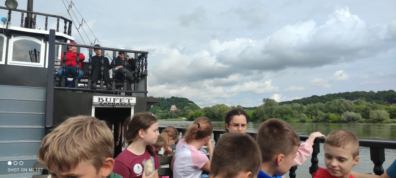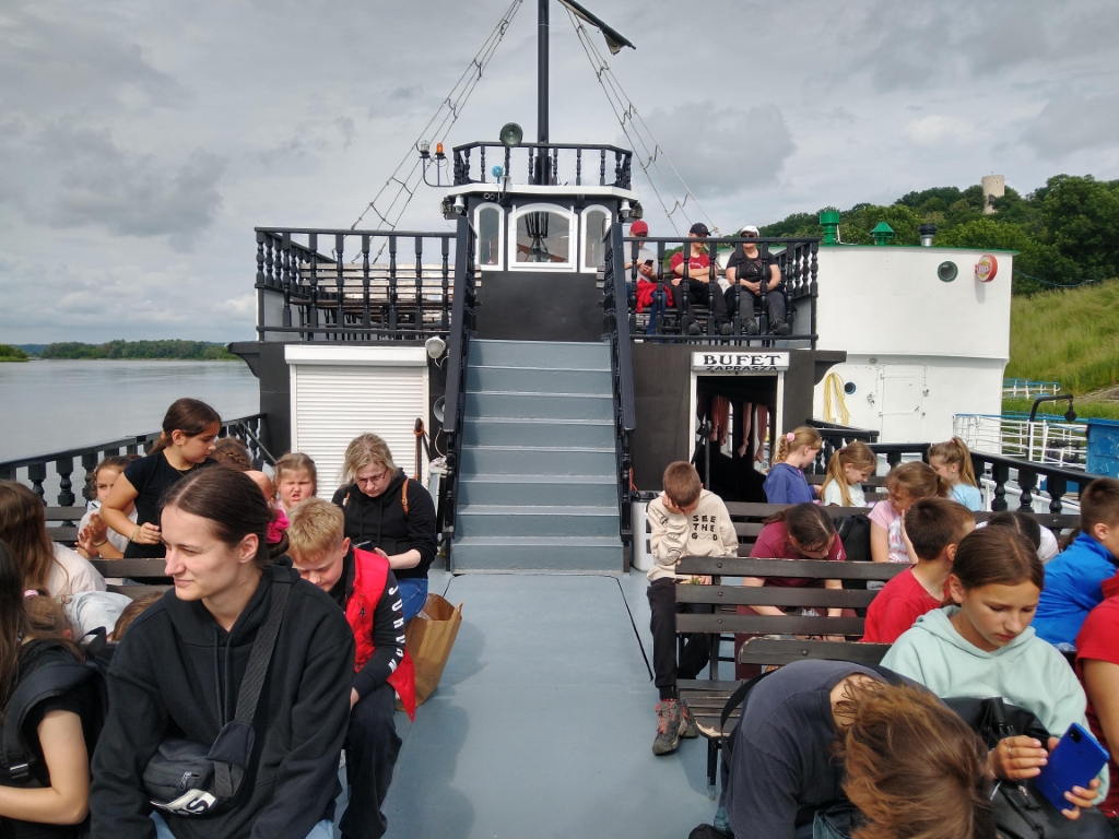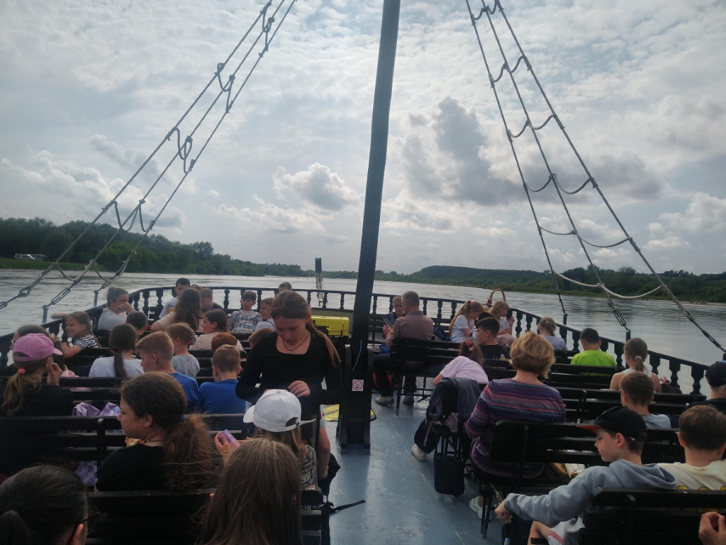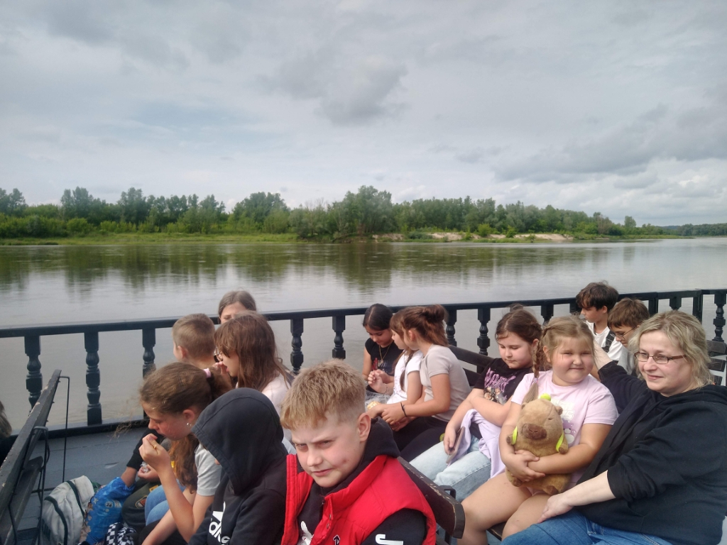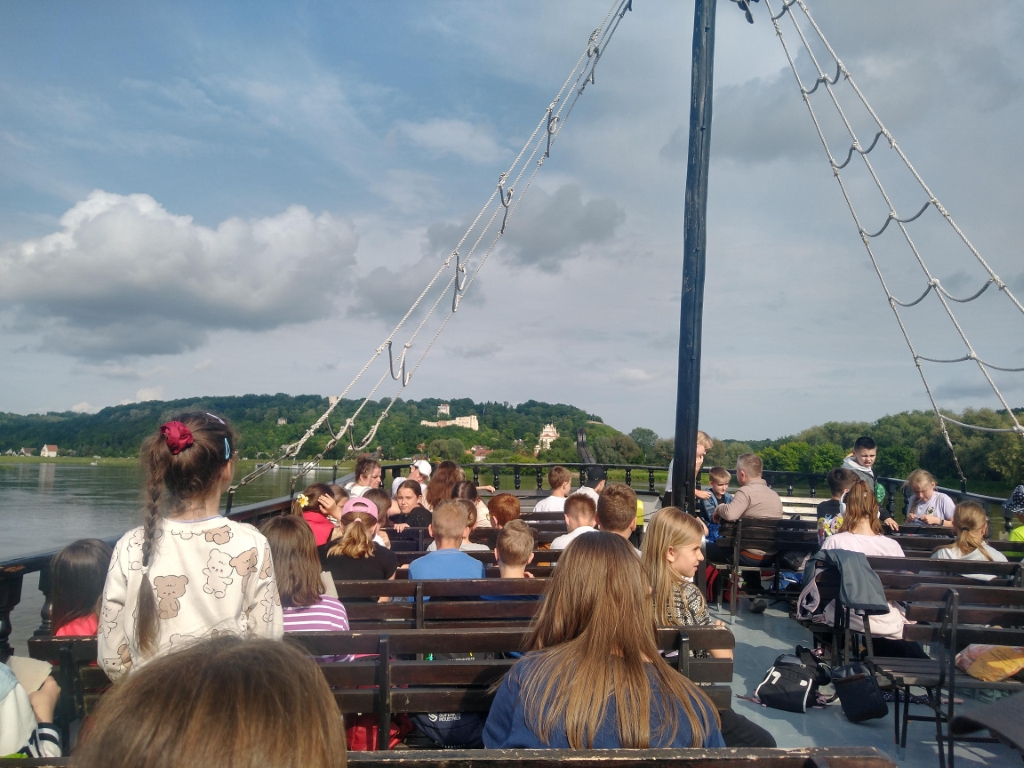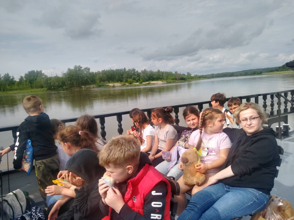Na zakończenie wycieczki odbył się niezapomniany rejs statkiem po Wiśle. W trakcie rejsu uczestnicy mogli podziwiać przepiękne widoki na okoliczne wzgórza, zamek i malowniczą zabudowę Kazimierza Dolnego. Ciepła, słoneczna pogoda dodała uroku temu wyjątkowemu doświadczeniu, a dzieci wróciły pełne pozytywnych wrażeń i wspomnień, które można dostrzec na ich uśmiechniętych buźkach uwiecznionych na zdjęciach z fotorelacji.