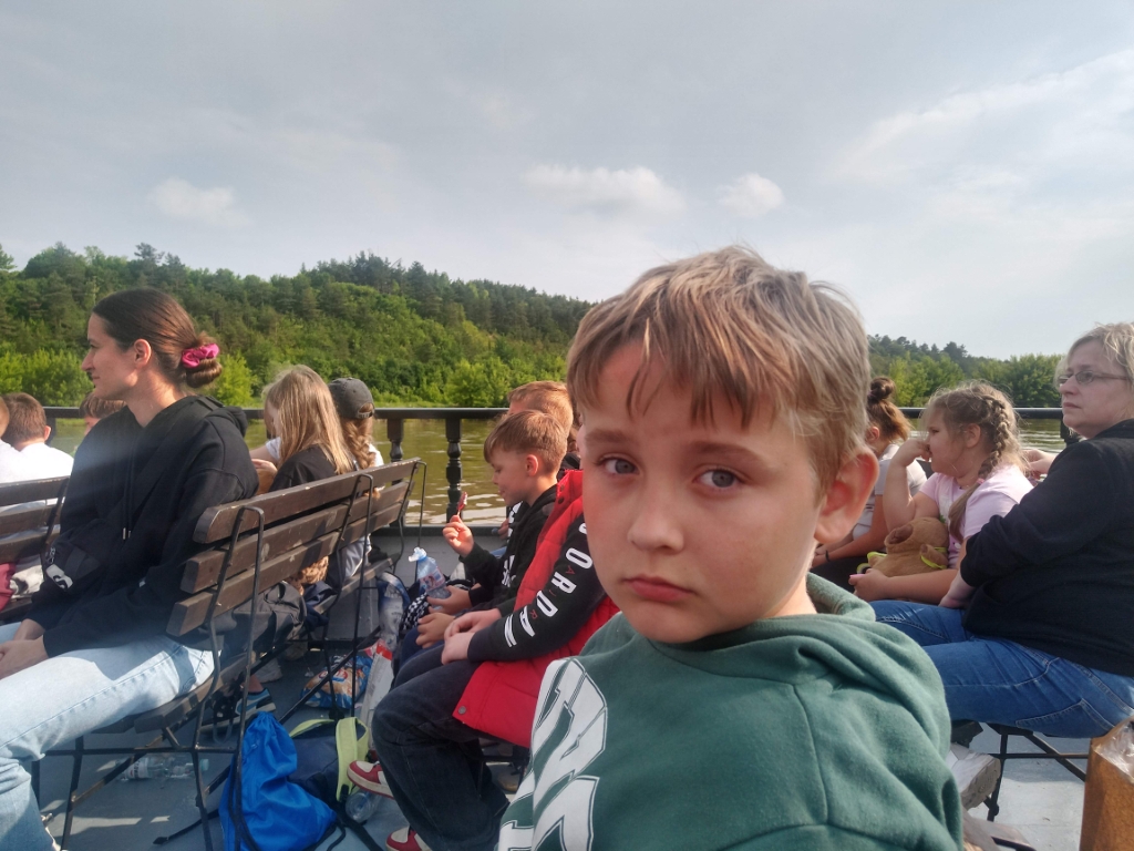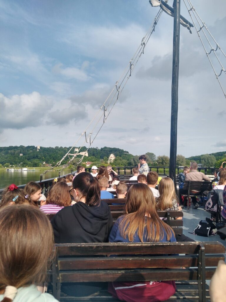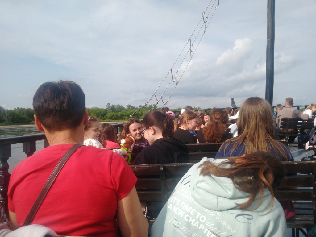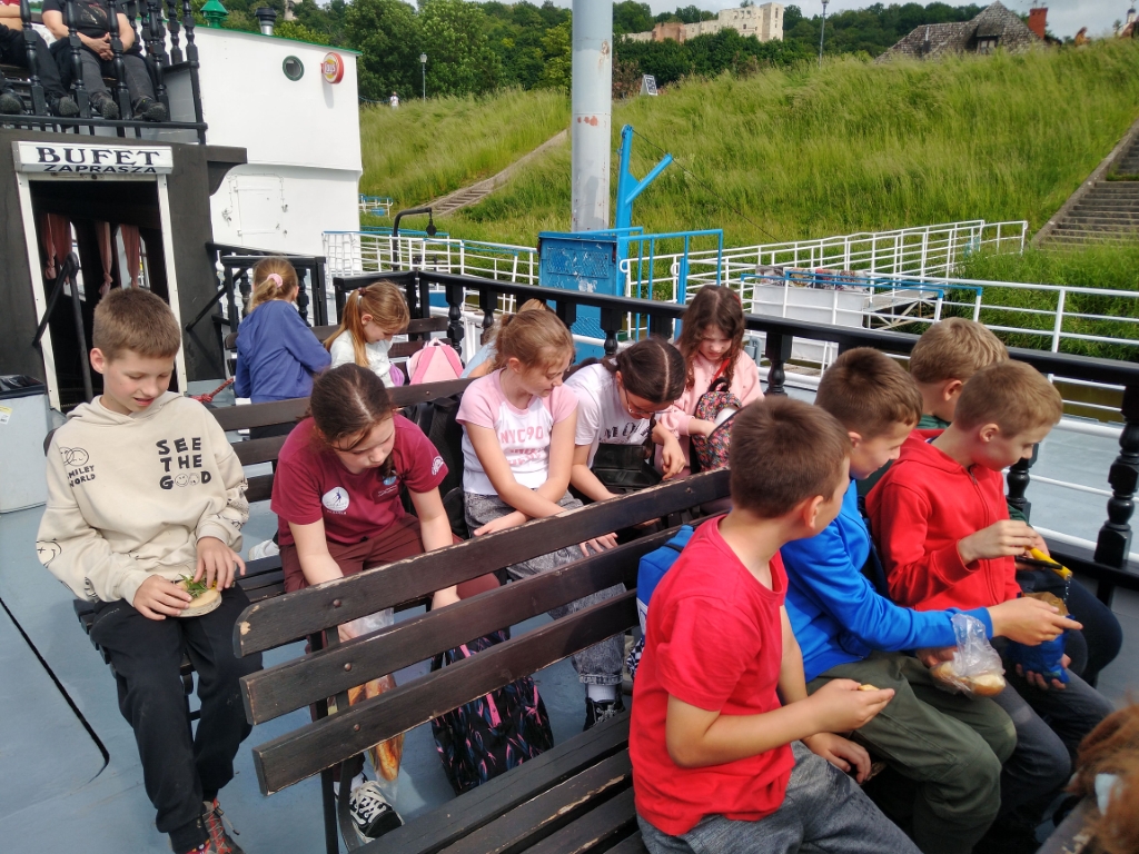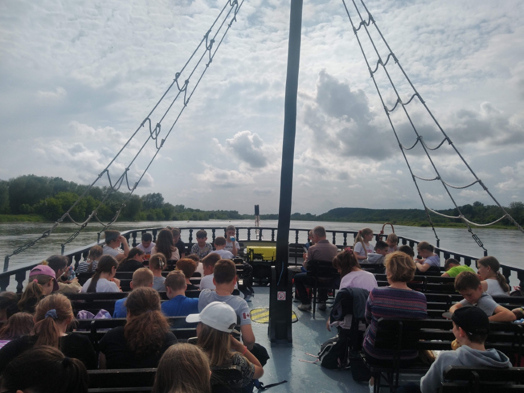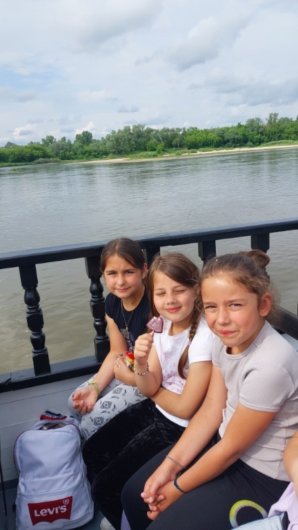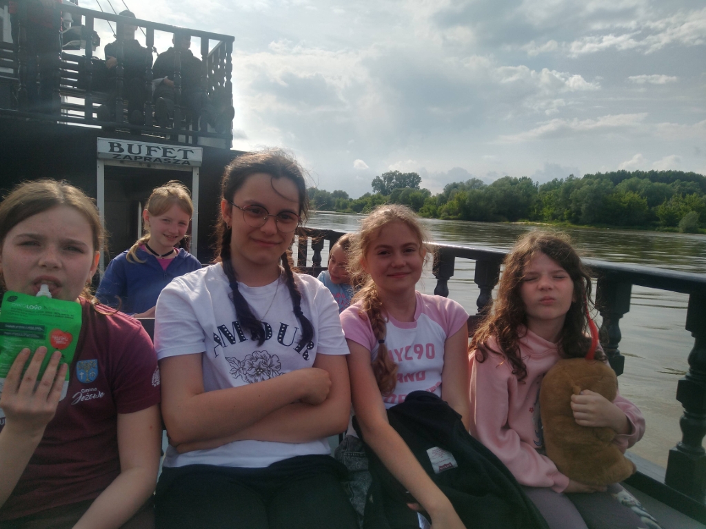 Na zakończenie wycieczki odbył się niezapomniany rejs statkiem po Wiśle. W trakcie rejsu uczestnicy mogli podziwiać przepiękne widoki na okoliczne wzgórza, zamek i malowniczą zabudowę Kazimierza Dolnego. Ciepła, słoneczna pogoda dodała uroku temu wyjątkowemu doświadczeniu, a dzieci wróciły pełne pozytywnych wrażeń i wspomnień, które można dostrzec na ich uśmiechniętych buźkach uwiecznionych na zdjęciach z fotorelacji.