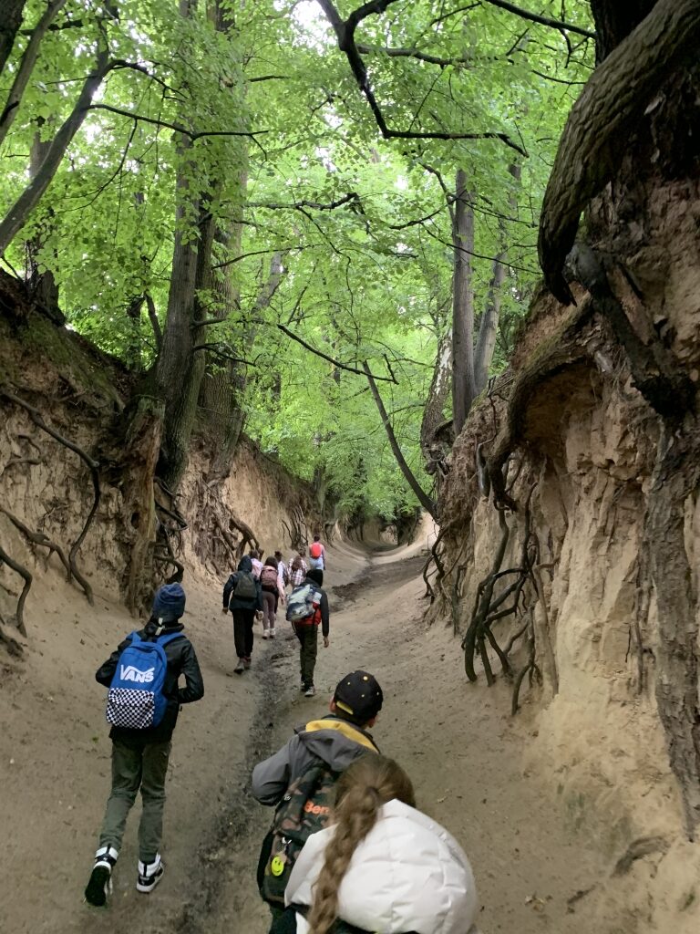 Program wycieczki rozpoczął się od zwiedzania Wąwozu Korzeniwy Dół, jednego z najbardziej malowniczych zakątków Kazimierza Dolnego. Spacer przez ten urokliwy wąwóz dostarczył dzieciom nie tylko wrażeń estetycznych, ale również edukacyjnych, pozwalając im poznać unikalną roślinność i formy geologiczne tego miejsca. Następnie grupa udała się na zwiedzanie ruin kazimierskiego zamku, gdzie dzieci mogły poczuć się jak prawdziwi średniowieczni rycerze i księżniczki, słuchając opowieści o historii zamku oraz jego mieszkańcach.